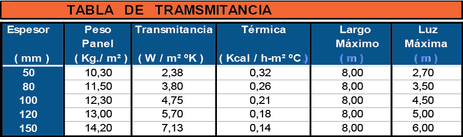 Espesores de: 50 - 80 -100 -120 - 150 mm.