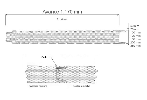 En forma estándar las chapas del panel están conformadas por 11 frisos en forma de tabloide, los cuales pueden ser eliminados, entregando un panel con sus caras lisas que en fachada otorgan características arquitectónicas.